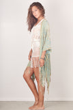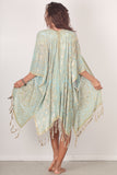 Feel the whispers of your feminine soul. We begin with imported silks manufactured using a vintage silk technique called Devore (known today as silk velvet burnout). This fabric is then hand beaded, tasseled & finished with loving attention to every detail. All or our Wild Moon wear is then blessed in divine feminine ways! From the moment you slip one on, you feel like the sacred that you truly are. It is as if memories flood through your body and your being of the time when you were worshipped and adored, when rose petals were thrown at your feet every where you walked. It is that time again now. Slip this on and remember, as we do, that you are truly divine darling! One size fits most. *The color on this one is much deeper than in the photos - the studio lighting has it a few shades lighter than the actual background color, please keep this in mind when purchasing (orders may take 3-10 days to process)